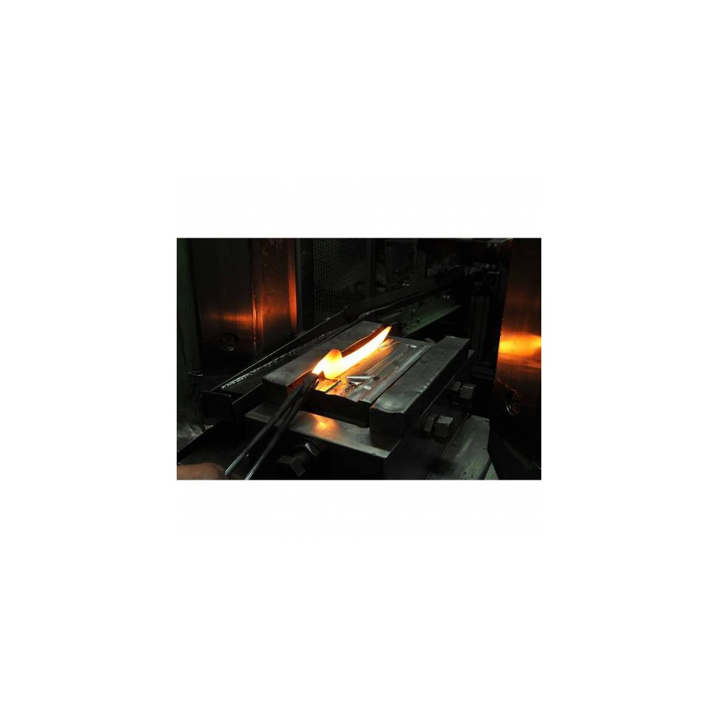 Für die Herstellung der Messer wurde spezieller hochwertiger Messerstahl mit einer Härte von ca. 55 - 57 HRC nach Rockwell verwendet, der feinkörnig, hart und wenig korrosionsanfällig ist. Außerdem ist es dank des flachen Schnitts sehr widerstandsfähig gegen Beschädigungen und Brüche und lässt sich hervorragend schneiden. Seine Eigenschaften werden für die Herstellung von Messern durch das Schmieden weiter verbessert, wodurch die Struktur homogenisiert und verdichtet wird.