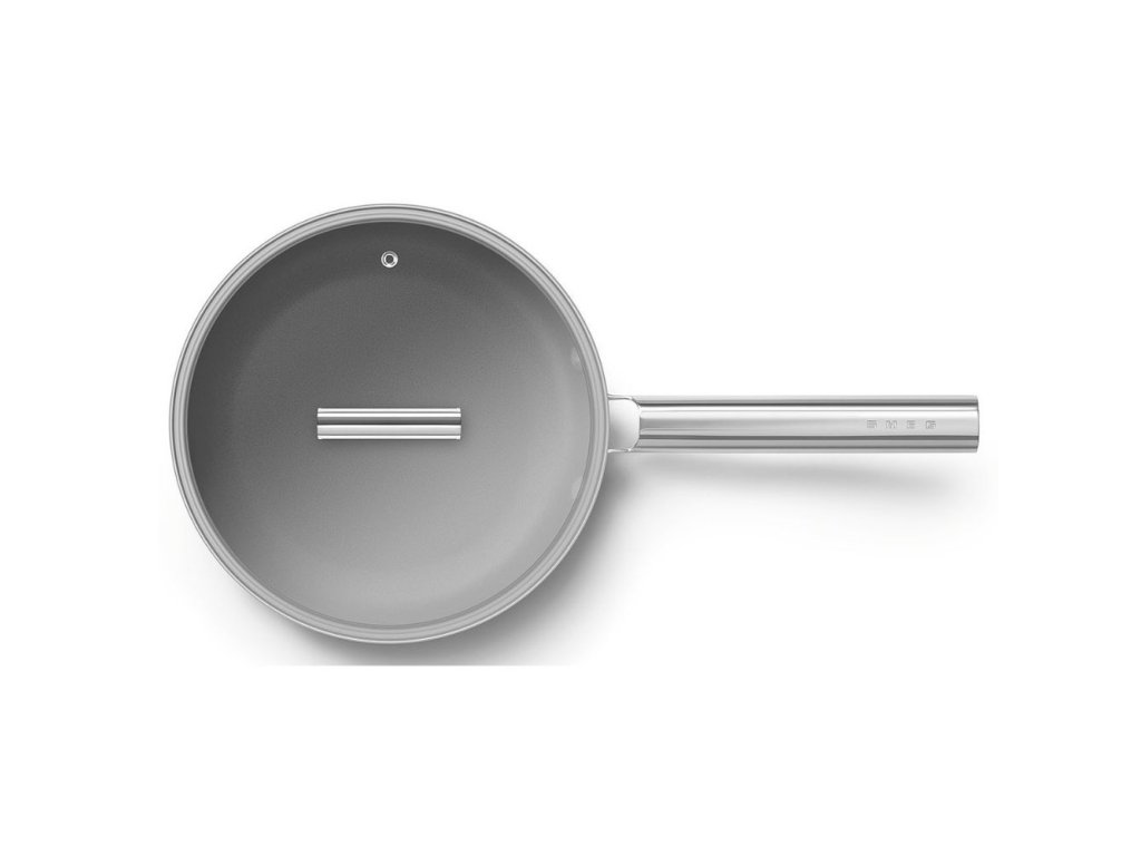 Die antihaftbeschichtete Universalpfanne aus Aluminium mit einem Durchmesser von 30 cm aus der Kollektion im Stil der 50er Jahre von Smeg verbindet hervorragendes Design mit hochwertigen Materialien und moderner Technik.
