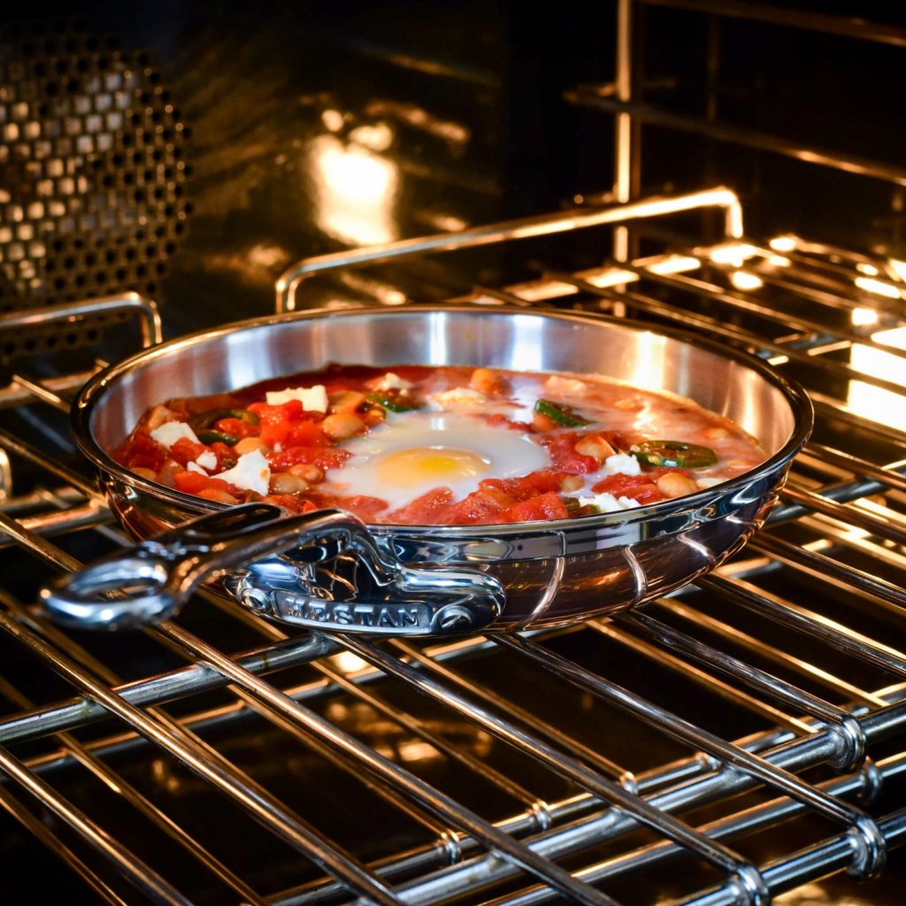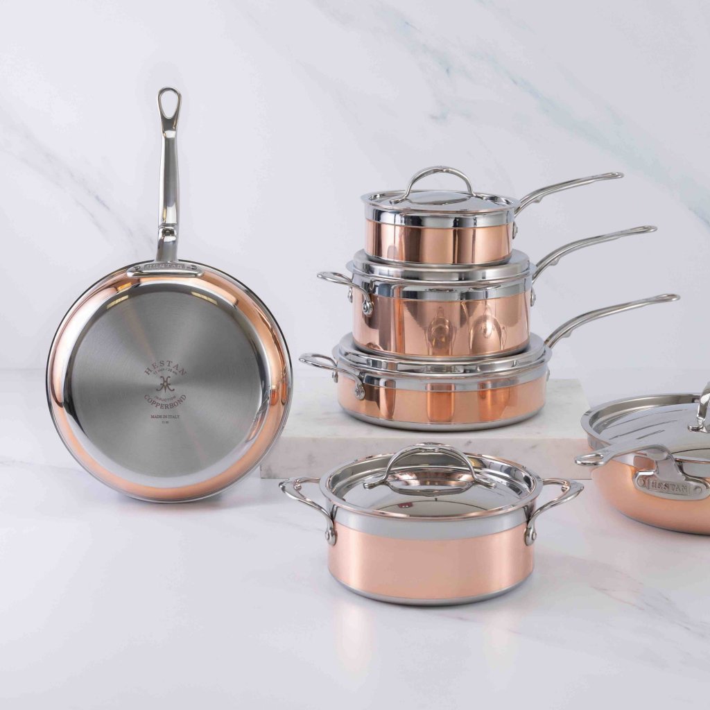 - innovative 5-Schicht-Edelstahlkonstruktion mit einem starken Kern aus 100 % reinem Kupfer für schnelles Aufheizen, außergewöhnliche Temperaturkontrolle und gleichmäßige Wärmeverteilung