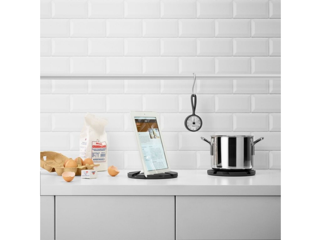 Pfiffig und dekorativ Smartmat Topfmatte dient auch als praktischer Ständer für ein Handy oder Tablet. Es macht es einfach, ein Rezept online anzusehen, die Nachrichten zu lesen oder fernzusehen. Wenn das Gericht servierfertig ist, verwenden Sie die Smartmat als Unterlage für die kochende Kasserolle oder Pfanne.