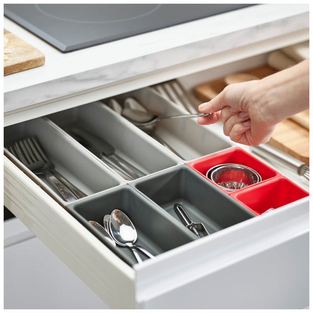 Schubladen-Organizer DUO BLOX 85190, 7-teilig, grau/rot, Joseph Joseph
