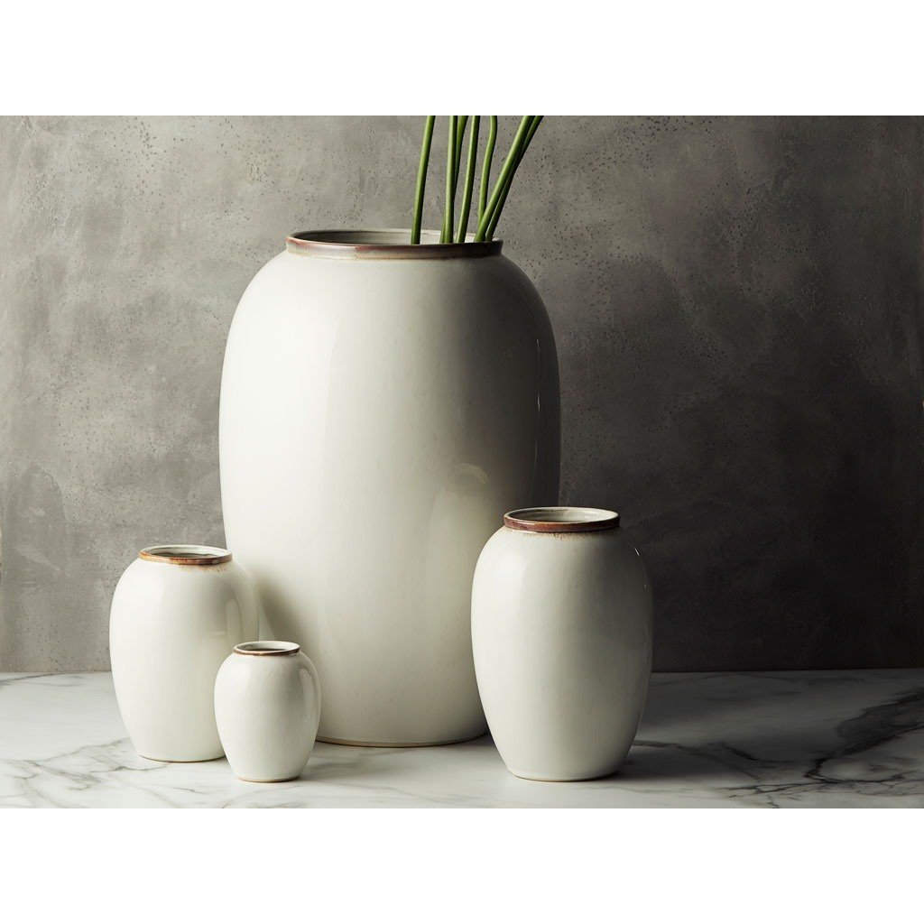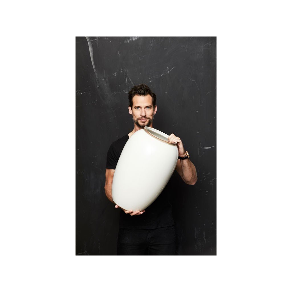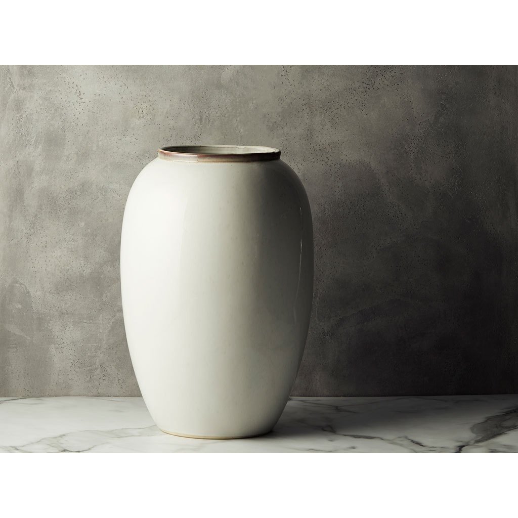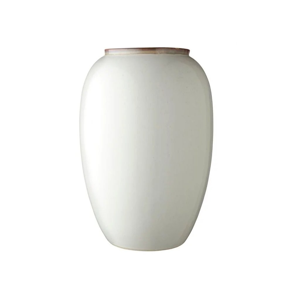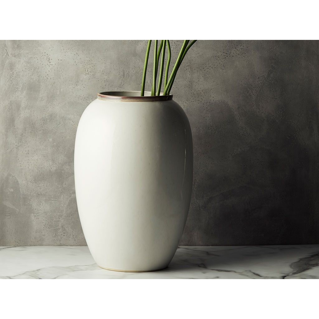 Vase mit einer Höhe von 50 cm von Bitz , besonders geeignet für große und üppige Sträuße, lange Schilfrohre oder vielleicht große Zweige mit saisonalen Dekorationen. Er ist aus Steinzeug gefertigt und neben seiner organischen Form kann man auch die schöne reaktive Glasurauf ihm bewundern, die perfekt zu den natürlichen Farben passt. Gestalte das richtige stimmungsvolle Stillleben zu Hause!