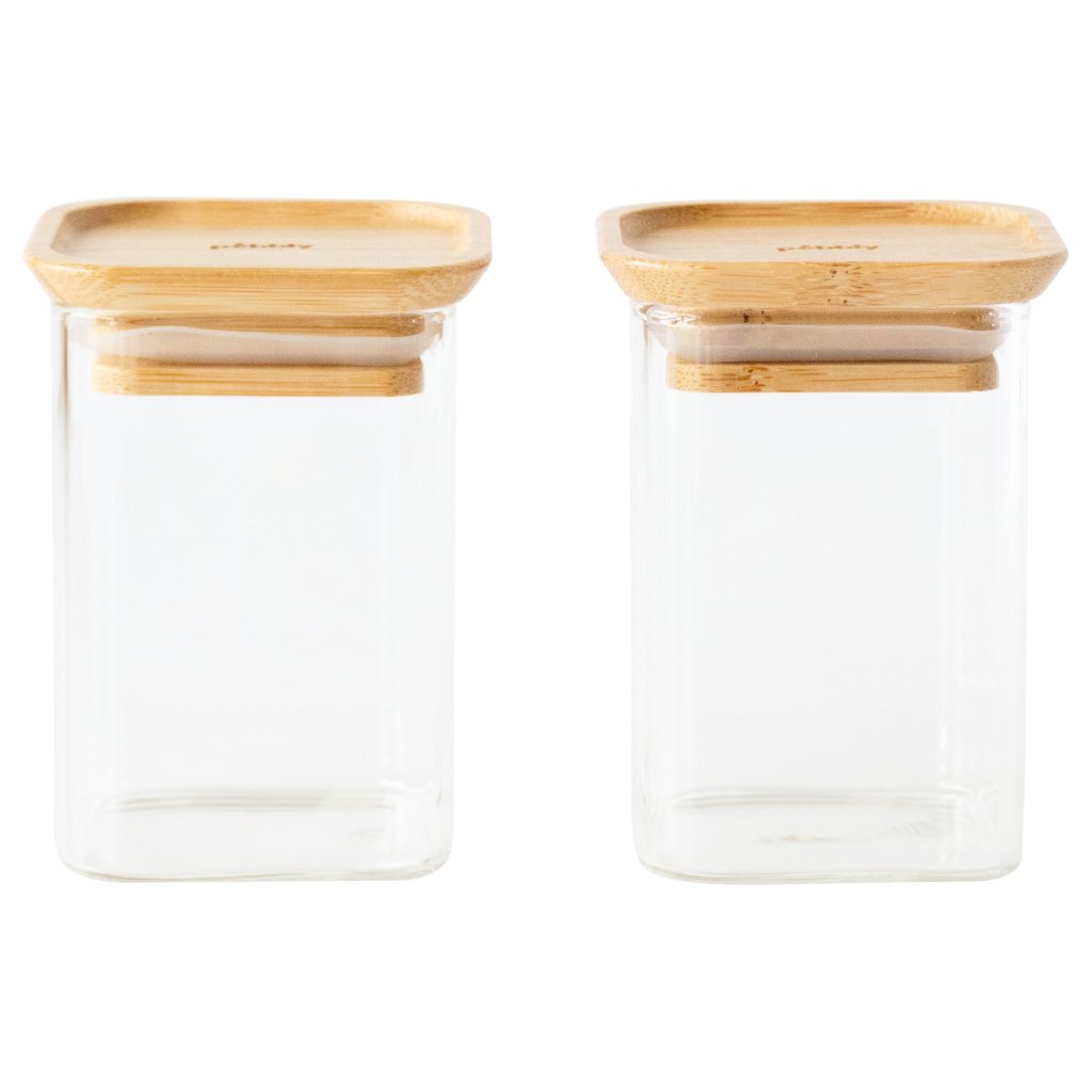 Vorratsdose PKV-047, 2er-Set, Glas / Bambus, Pebbly