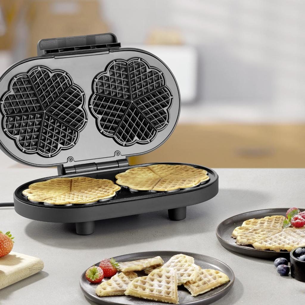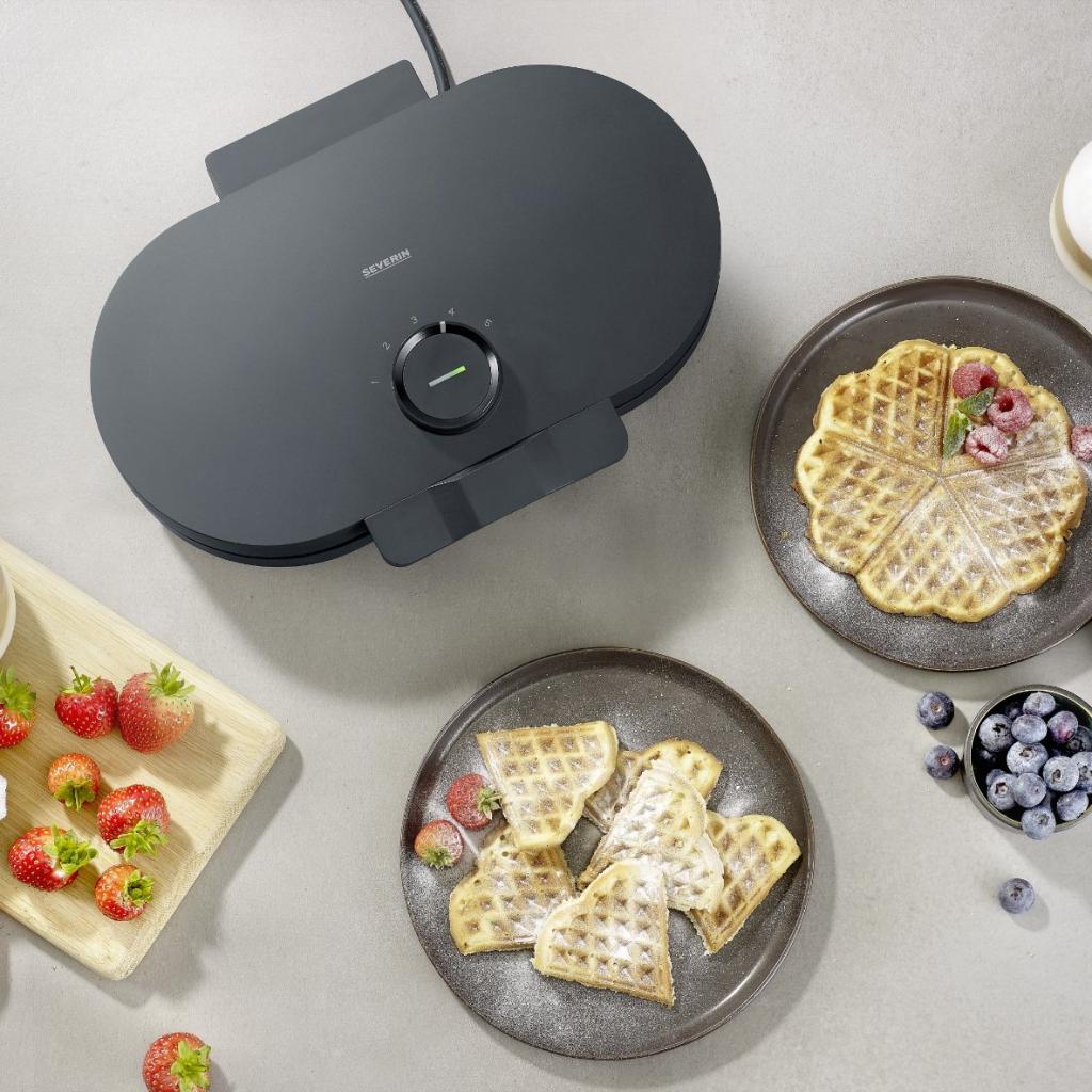 - Waffeleisen Severin WA 2118 ermöglicht die gleichzeitige Zubereitung von Dutzenden herzförmiger Waffeln, ideal zum schnellen Servieren mehrerer Portionen