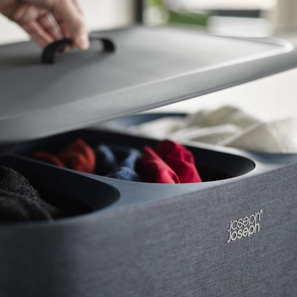 - Wäschekorb Joseph Joseph TOTA TRIO in Schwarz bietet eine praktische und übersichtliche Lösung zum Sortieren der Wäsche im Schlafzimmer, Badezimmer oder Hauswirtschaftsraum.