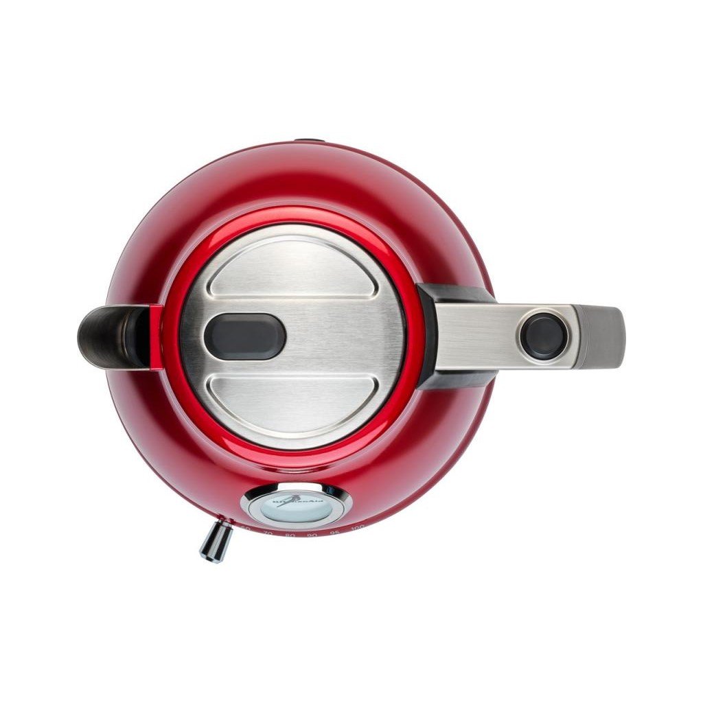 Der Wasserkocher im kultigen Design der 1950er Jahre fasst bis zu 1,5 Liter Wasser. Die doppelten Wände halten das Wasser länger heiß, isolieren besser (der Wasserkocher fühlt sich kühler an) und reduzieren die Geräusche des Heizvorgangs.
