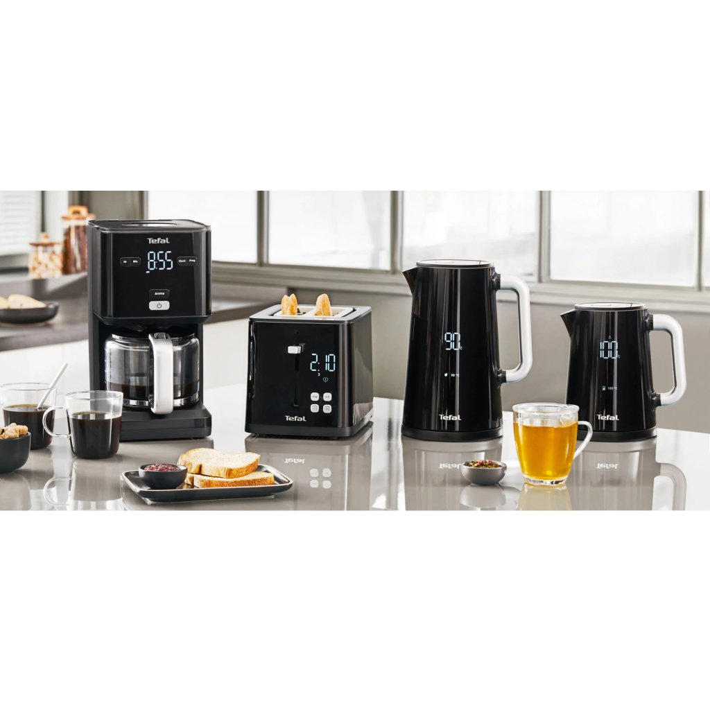 Der DIGITAL SMART & LIGHT Wasserkocher mit Temperaturregelung von Tefal verbindet moderne Technik mit einem attraktiven minimalistischen Look. Seine schwarzen Wände mit einer Innenseite aus Edelstahl haben ein LCD-Display, das die Wassertemperatur anzeigt. Die Temperaturregelung ist eine äußerst wichtige Funktion für alle Teeliebhaber und insbesondere für Liebhaber von grünem oder weißem Tee, der bei niedrigeren Temperaturen aufgebrüht werden sollte. Es ist auch nützlich für alle Eltern, die oft warmes, aber nicht heißes Wasser für die Zubereitung von Babymilch oder anderer Nahrung benötigen.