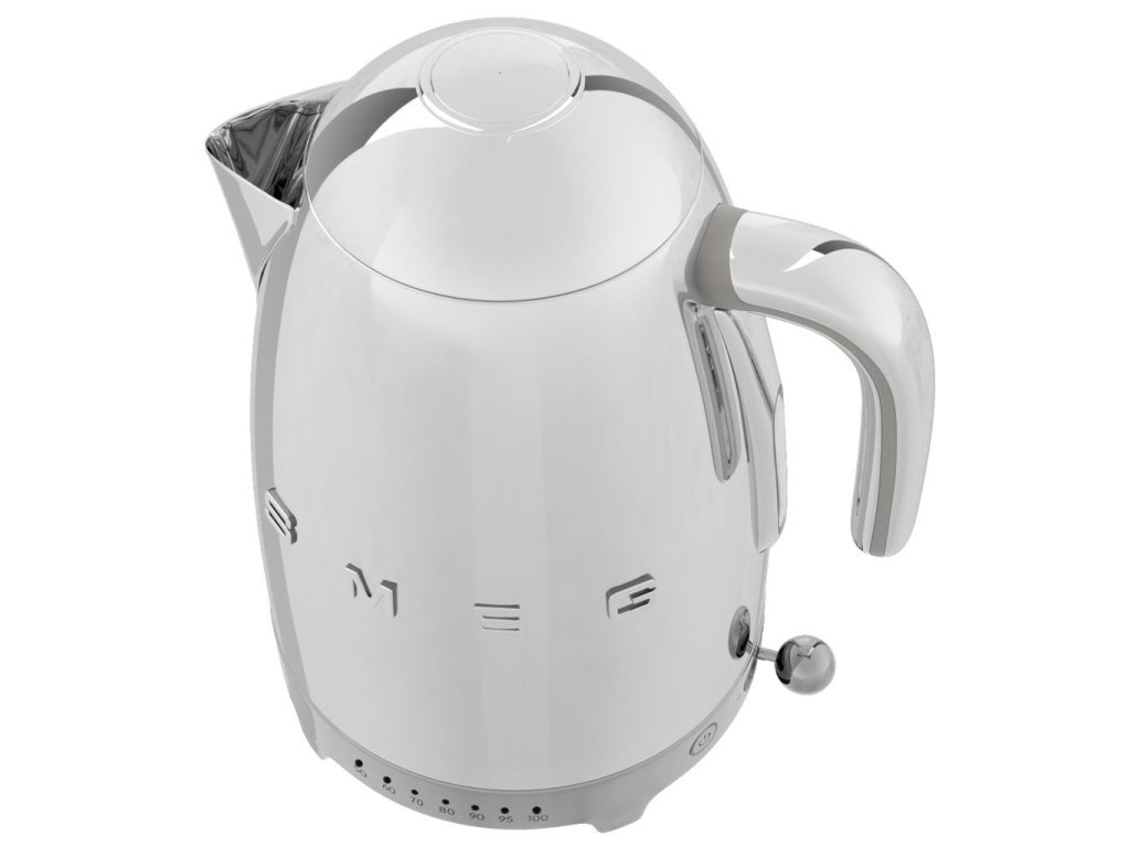 Dieser chrom-farbene Wasserkocher mit Temperaturwähler (50 °C; 60 °C; 70 °C; 80 °C; 90 °C; 95 °C; 100 °C) verbindet fortschrittliche Technologie mit Retro-Stil. Er erhitzt oder kocht Wasser schnell und bietet ein großes Volumen von 1,7 l (ideal für 7 Tassen) und einen drehbaren Sockel. Die Elemente aus glänzendem Chrom, der Anti-Tropf-Auslauf, die weiche Öffnung des Deckels und die charakteristische runde Form verursachen, dass Sie den Wasserkocher ebenso lieben werden, wie Ihren Tee um fünf.