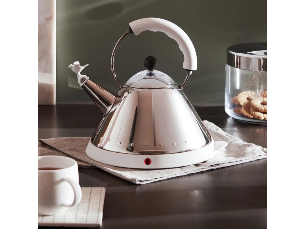 - Der elektrische Wasserkocher MG32 mit seinem ikonischen Vogelpfeifendetail vereint funktionale Innovation und verspieltes Design zu einem ästhetischen Ganzen