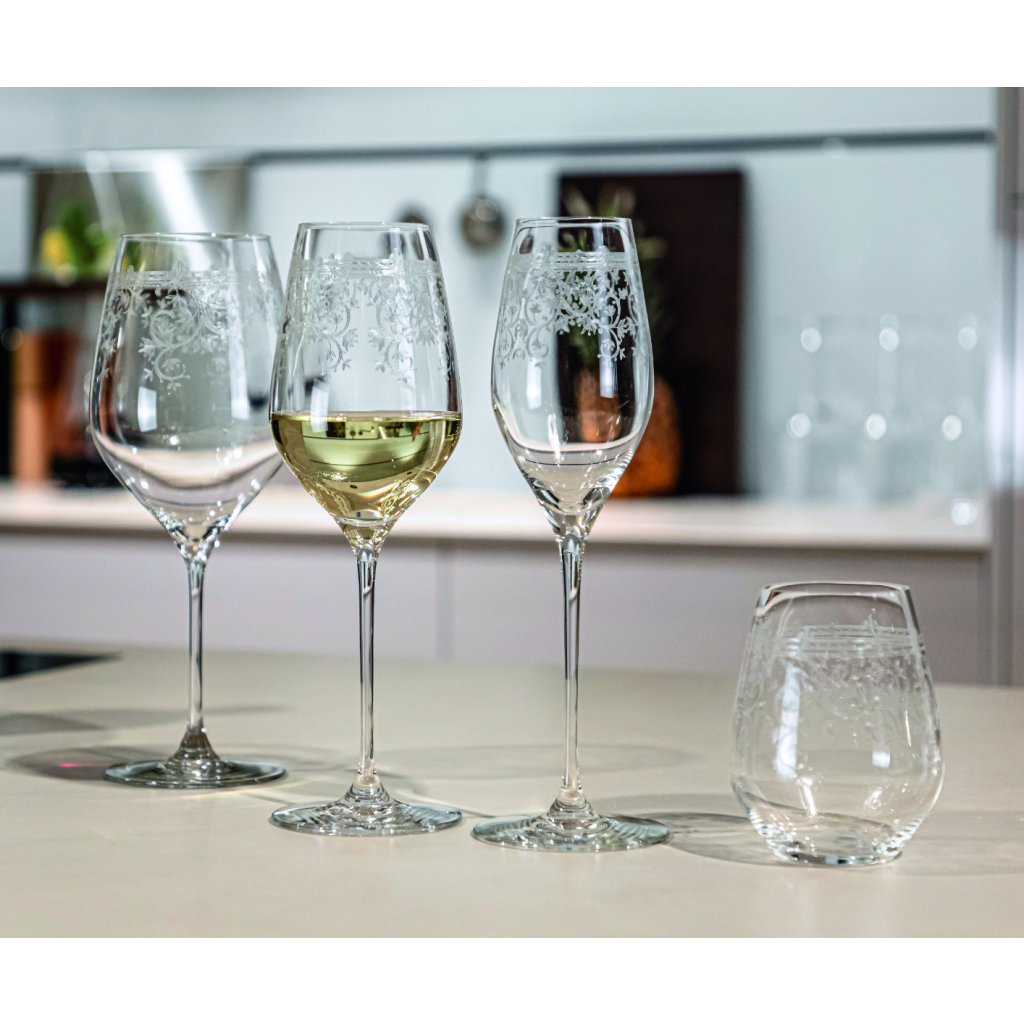 - als einzige Sammlung von Spiegelau hat eine feine pantografische Radierung mit Pflanzenmotiven