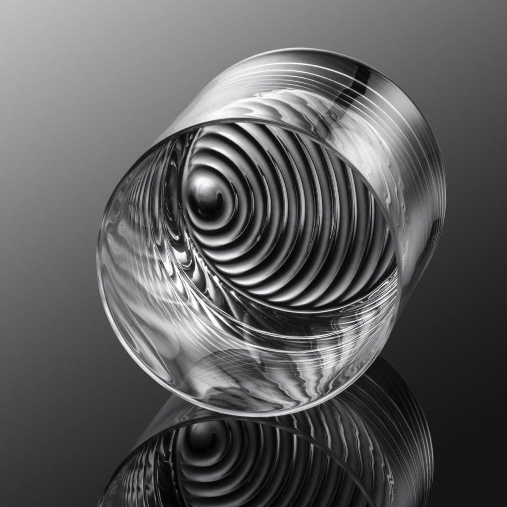 - der Boden des Glases ist mit einem subtilen wellenförmigen Dekor verziert, das die Farbe des Getränks hervorhebt und seinen optischen Reiz erhöht