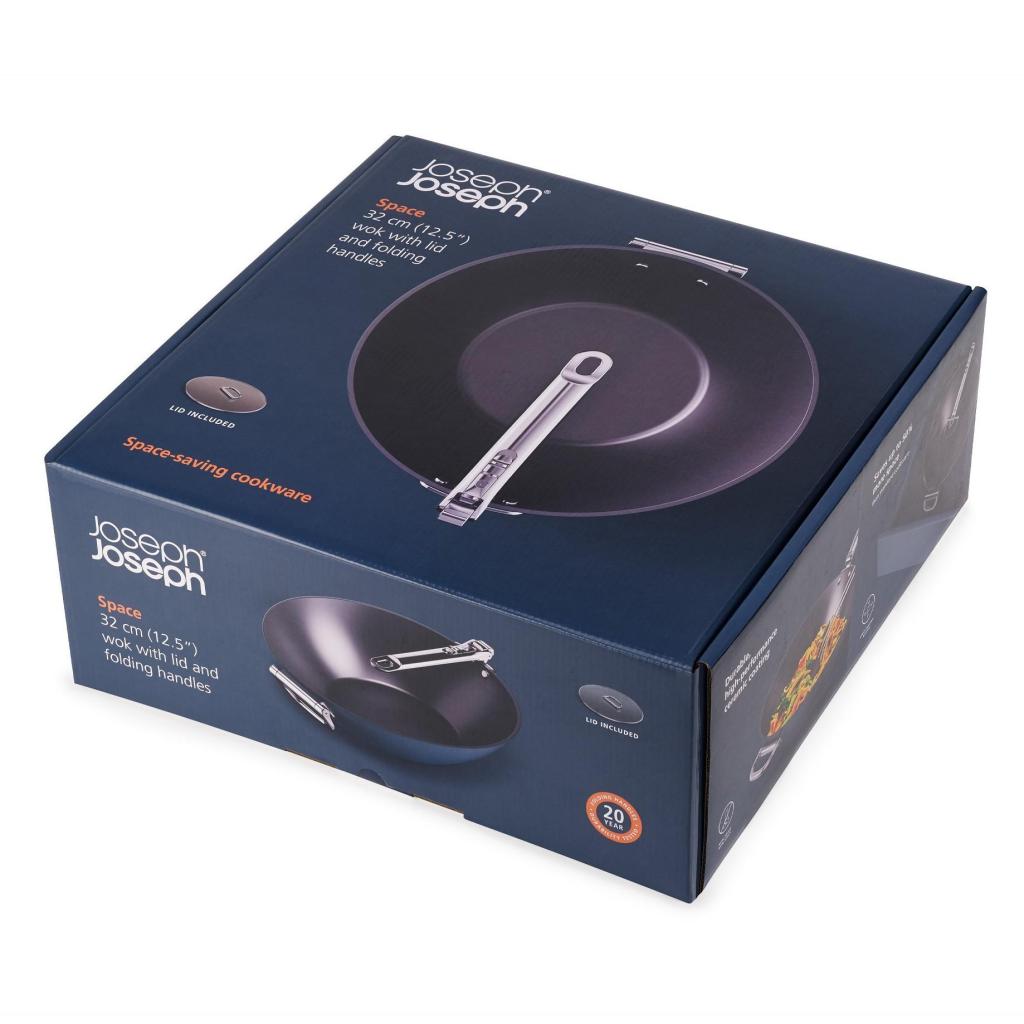 - Wok Joseph Joseph SPACE mit Deckel ist für intensives Sautieren, Braten, Kochen und Schmoren großer Mengen an Lebensmitteln konzipiert, wobei besonderer Wert auf die platzsparende Aufbewahrung gelegt wird.