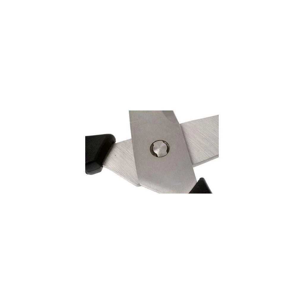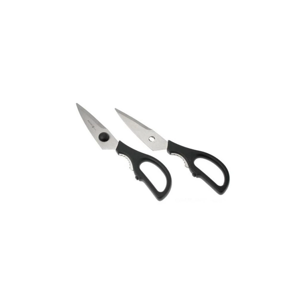 Eine Küchenschere ist ein unverzichtbares Werkzeug in jedem Haushalt. Die solide, robuste Schere ermöglicht das Schneiden von Fisch und Geflügel, das Trimmen von Kräutern oder Gemüse sowie den klassischen Einsatz auf Papier, Schnur oder Folie. Die Schere hat einen Mechanismus zur einfachen Reinigung und ist aus rostfreiem Stahl gefertigt.