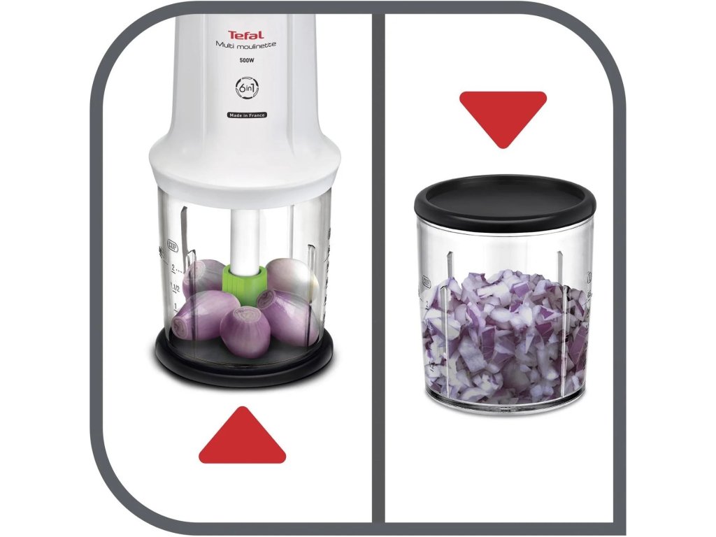 Wenn Sie Ihre Zeit nicht mit dem Hacken von Zwiebeln, Knoblauch oder Kräutern verschwenden wollen, holen Sie sich diesen multifunktionalen Zerkleinerer MULTI MOULINETTE 6 in 1. Einfaches Zerkleinern, Mixen oder Pürieren von Zutaten zu köstlichen Saucen, Mayonnaisen und Marinaden.