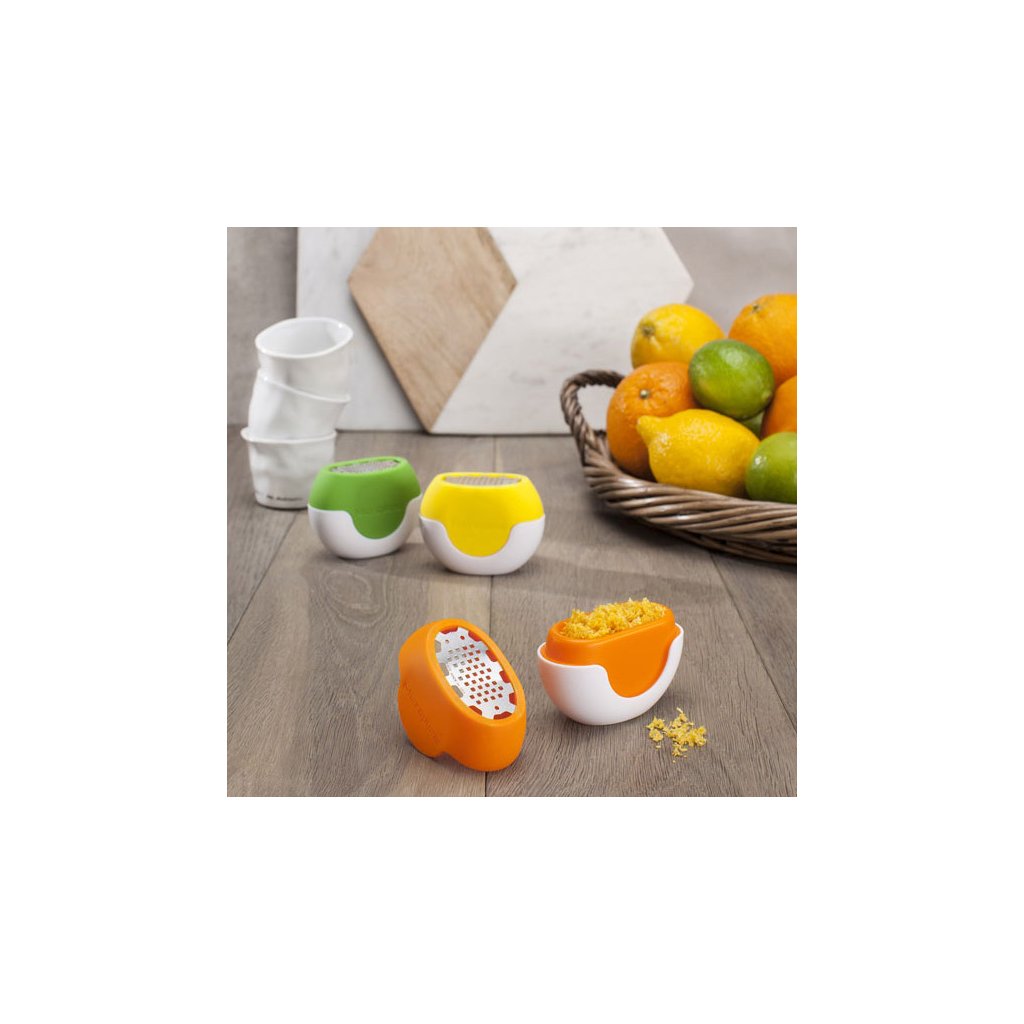 Die Flexi Zesti-Silikonreibe wird in einer Kombination aus weißer, gelber, grüner oder oranger Farbe angeboten, die an die Schale von Zitronen, Limetten und Orangen erinnert und direkt zur Zubereitung eines erfrischenden Desserts einlädt.